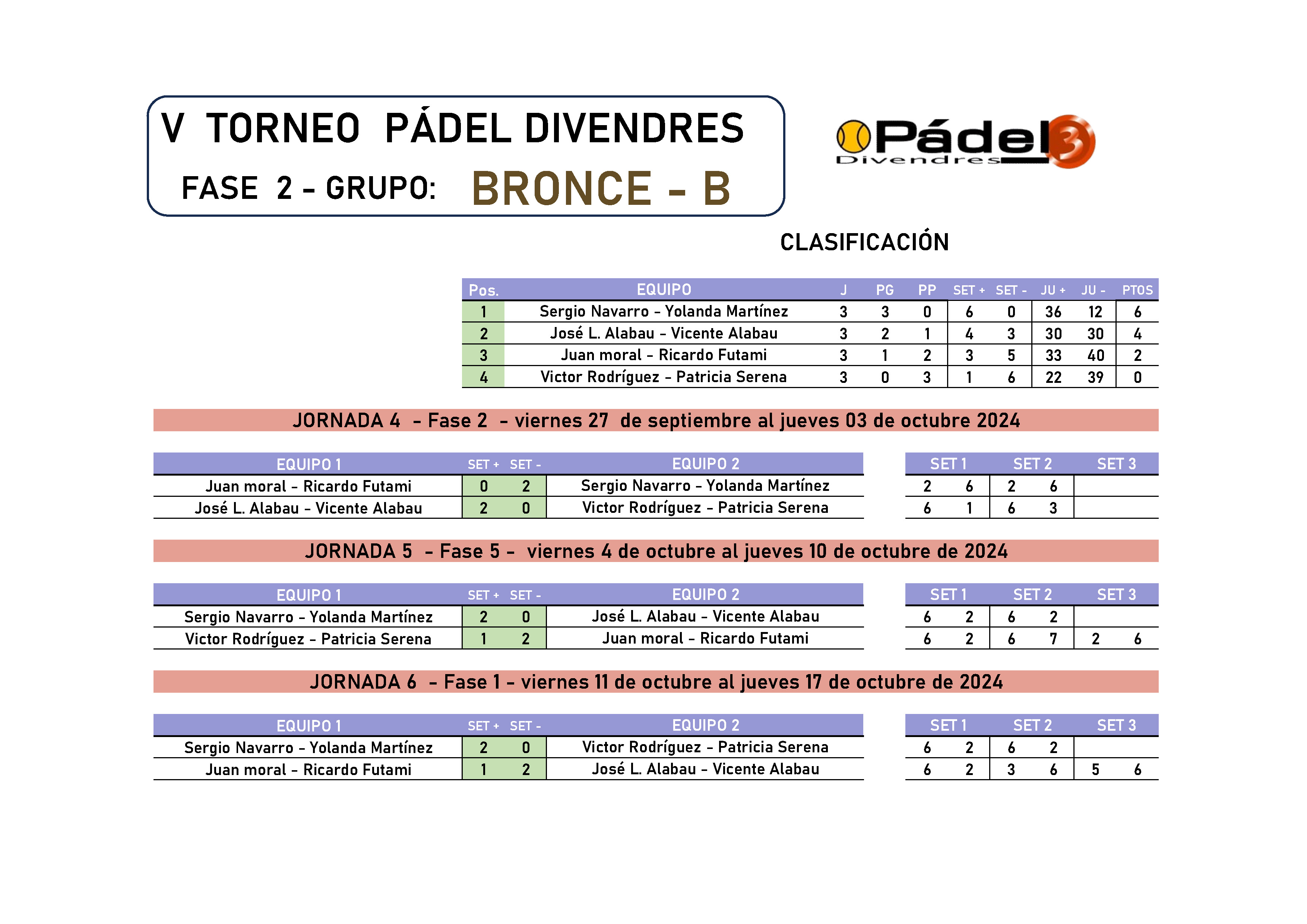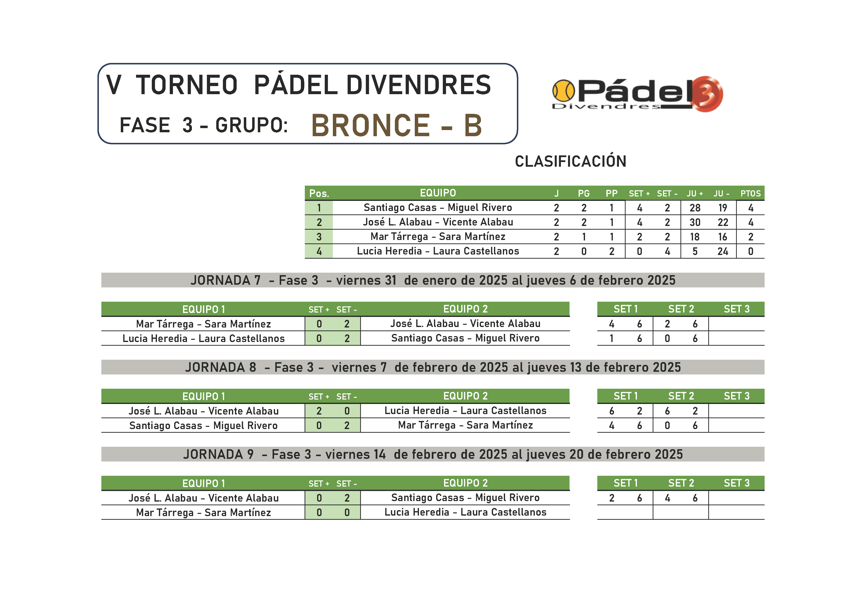 CATEGORÍA BRONCE GRUPO B Resultados 3ª Fase Resultados 2ª Fase Resultados 1ª Fase ↑ Ascienden a Plata: