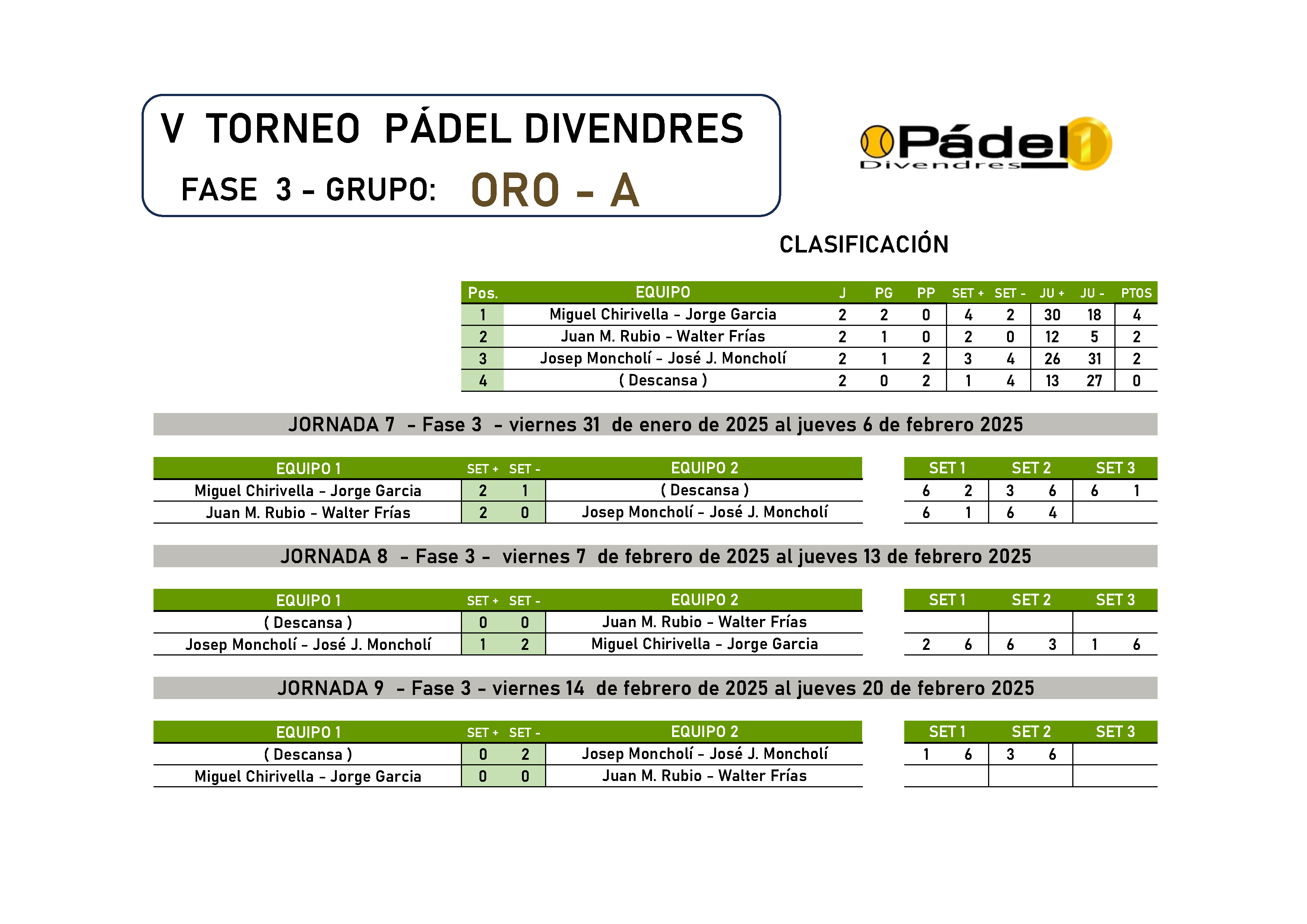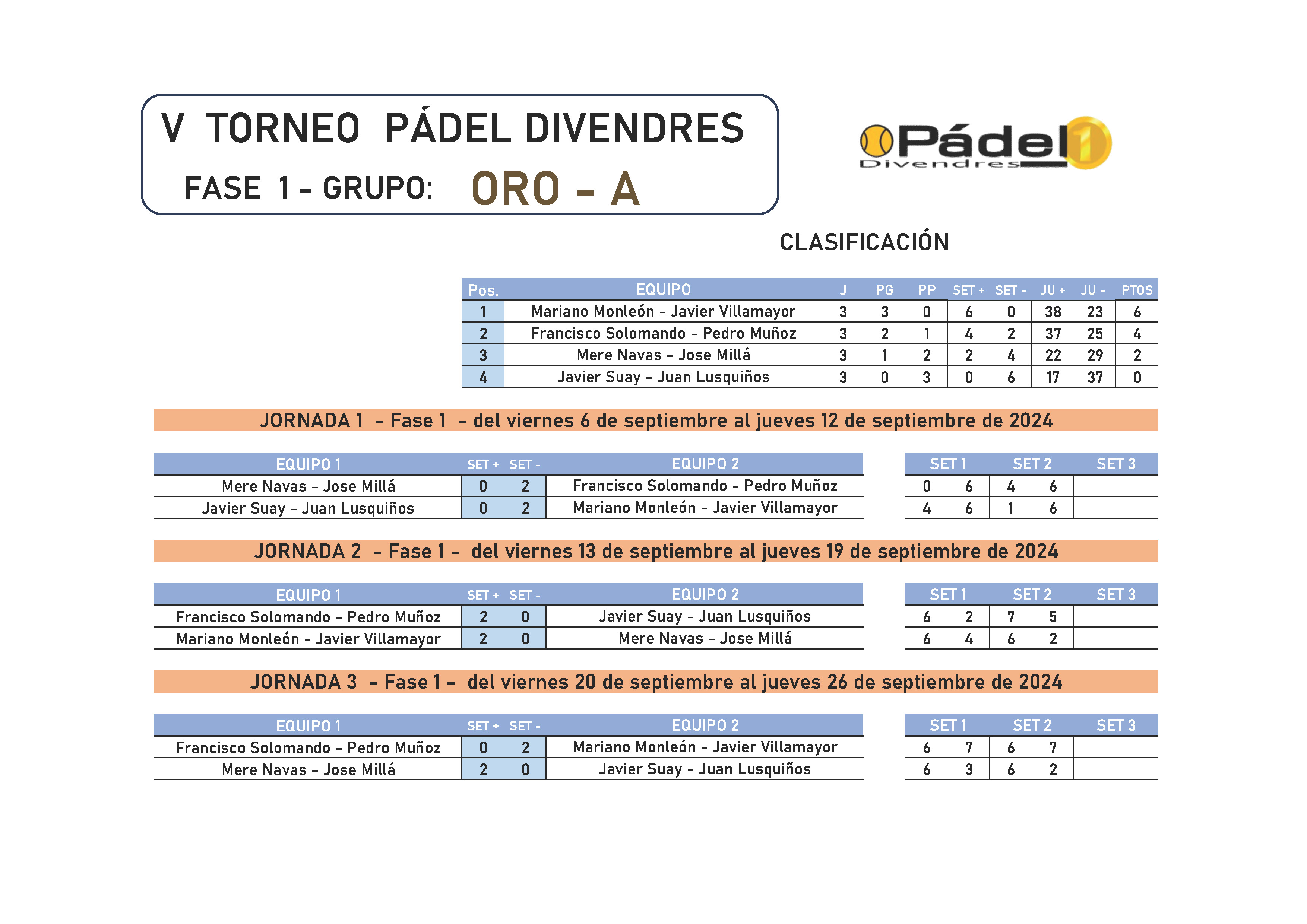 CATEGORÍA ORO GRUPO A Resultados 3ª Fase Resultados 2ª Fase Resultados 1ª Fase ↑ Ascienden a Diamante:↓ Descienden a Plata: